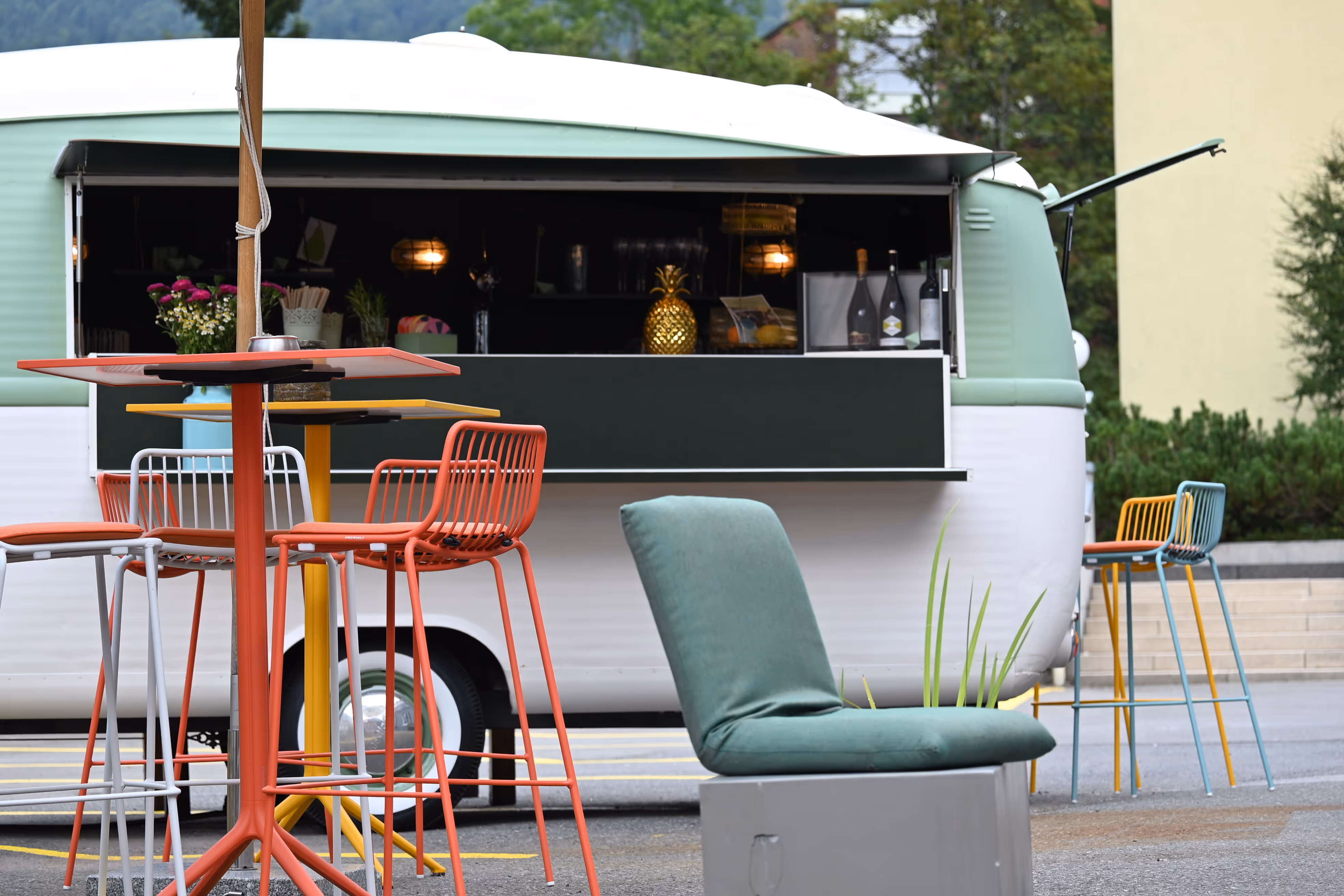 Wir versorgen dich im Sonnengarten mit Sommerdrinks aus dem BARavan- einem wunderschönen, zur Bar umgebauten Caravan aus den 60er Jahren!